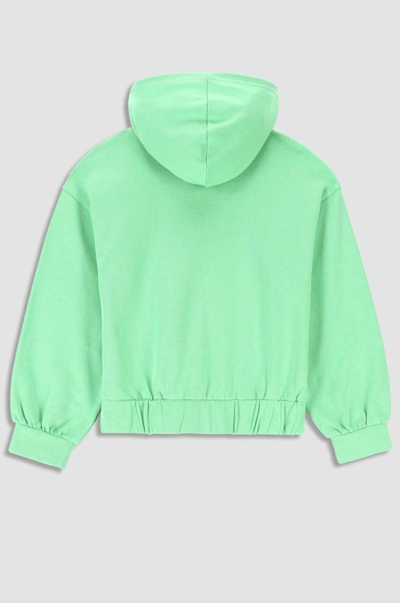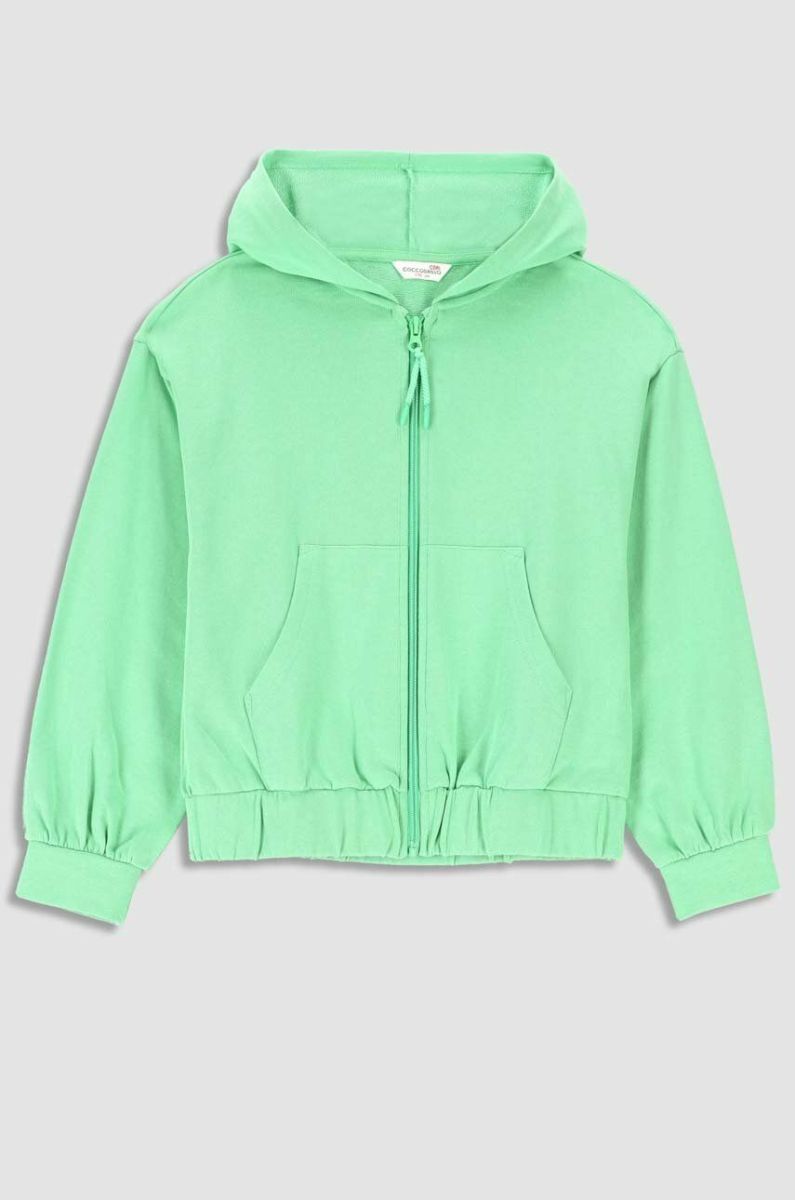 Дитяча бавовняна кофта Coccodrillo колір зелений з капюшоном однотонна