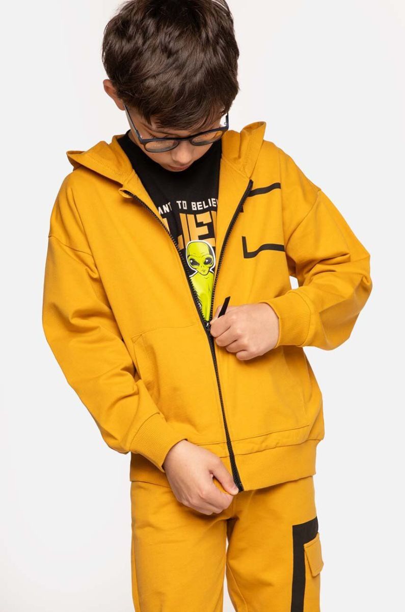 Дитяча бавовняна кофта Coccodrillo колір жовтий з капюшоном однотонна