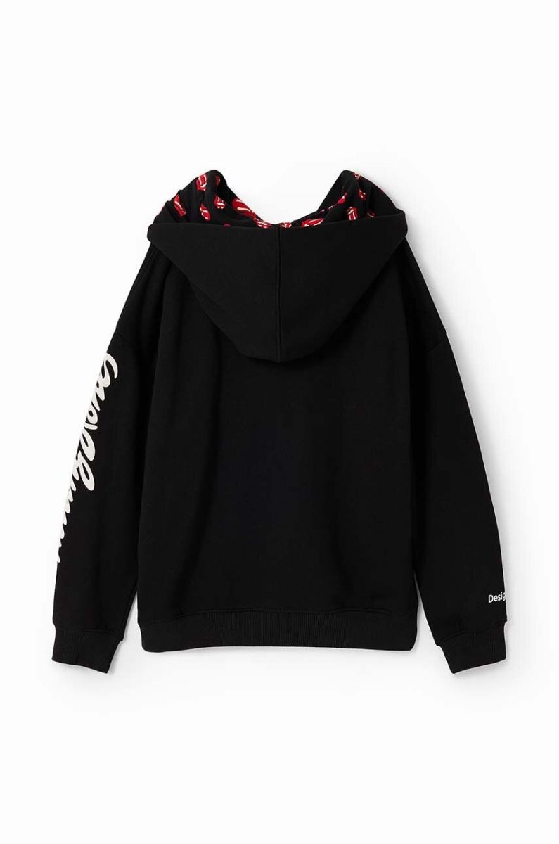 Дитяча бавовняна кофта Desigual 23WGSK08 SWEAT LONG SLEEVE колір чорний з капюшоном з принтом