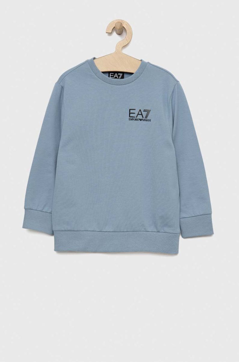 Дитяча бавовняна кофта EA7 Emporio Armani з принтом колір блакитний