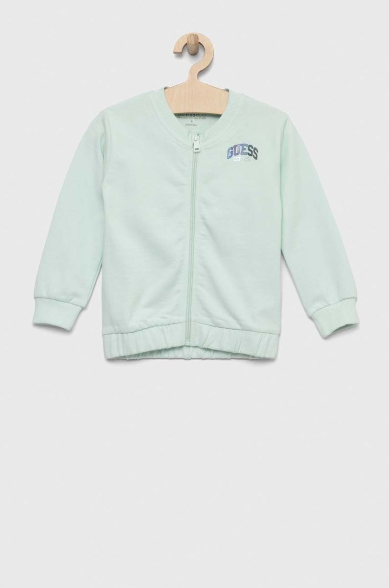 Дитяча бавовняна кофта Guess колір бірюзовий однотонна