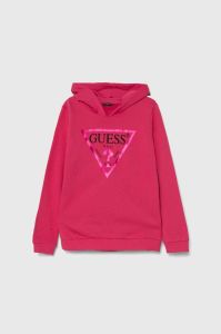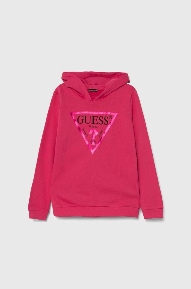Дитяча бавовняна кофта Guess колір рожевий з капюшоном з принтом (3372512)