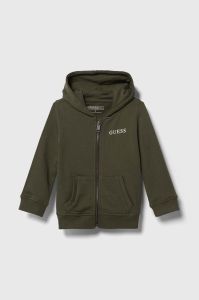 Дитяча бавовняна кофта Guess колір зелений з капюшоном однотонна