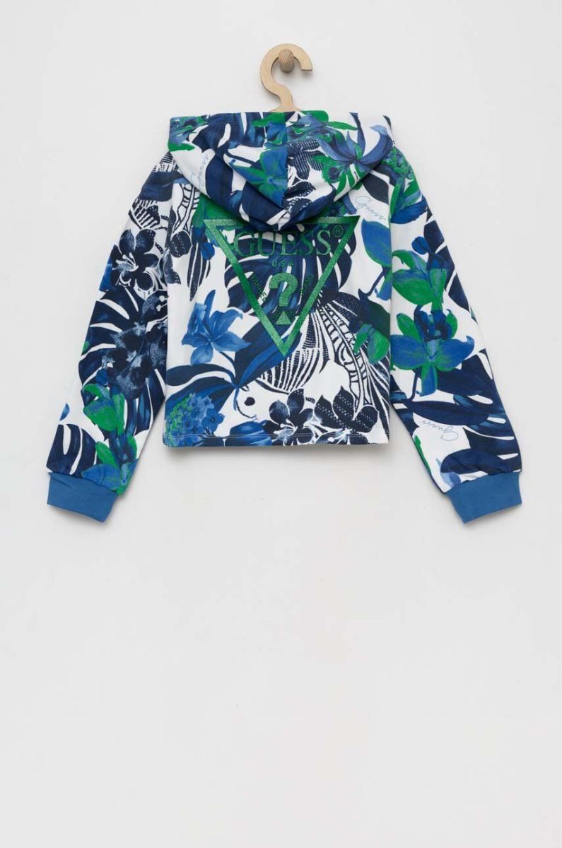 Дитяча бавовняна кофта Guess з капюшоном візерунок колір блакитний (3135769)
