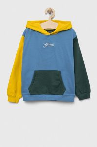 Дитяча бавовняна кофта Guess з капюшоном візерунок колір блакитний (3299043)