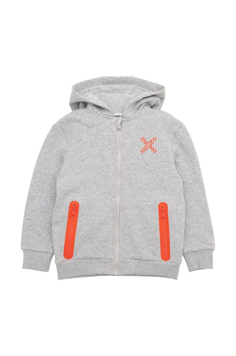 Дитяча бавовняна кофта Kenzo Kids колір сірий з принтом