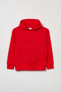 Дитяча бавовняна кофта OVS колір червоний з капюшоном з аплікацією