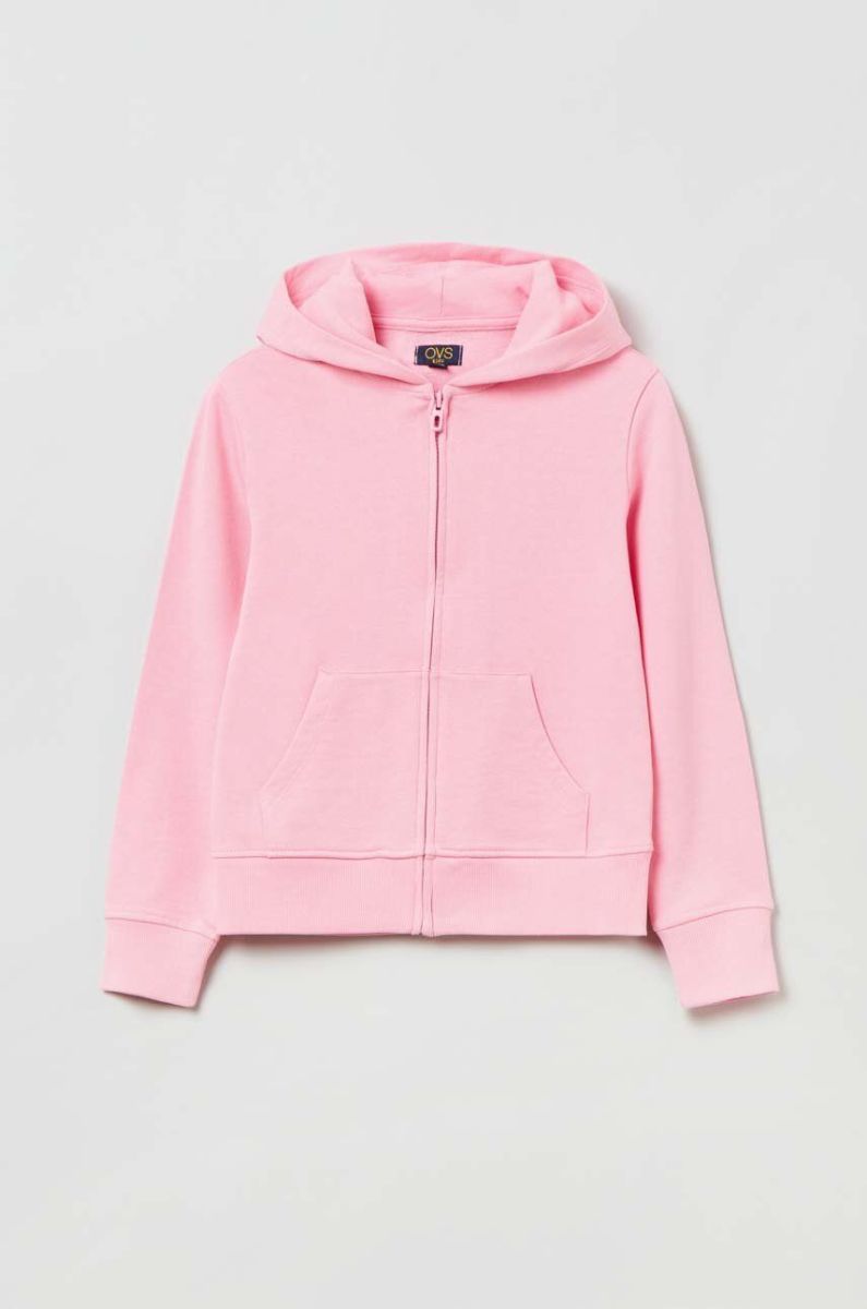 Дитяча бавовняна кофта OVS колір рожевий з капюшоном однотонна (3043107)