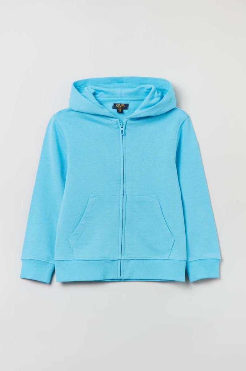 Дитяча бавовняна кофта OVS з капюшоном однотонна колір блакитний (3042956)