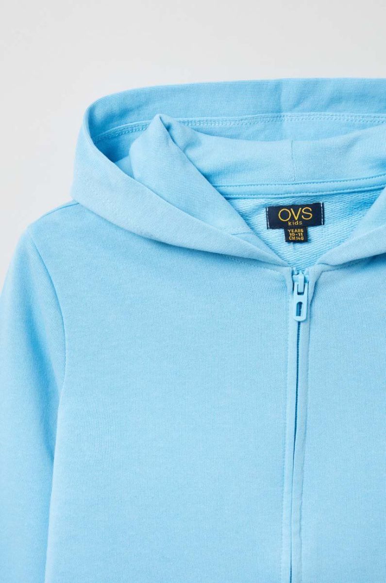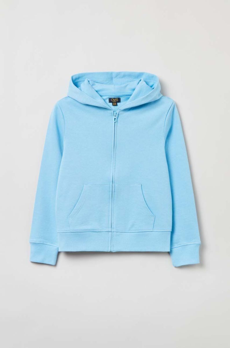 Дитяча бавовняна кофта OVS з капюшоном однотонна колір блакитний (3043116)