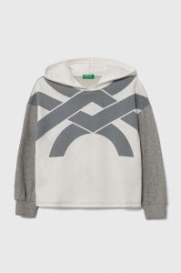 Дитяча бавовняна кофта United Colors of Benetton колір білий з капюшоном з принтом