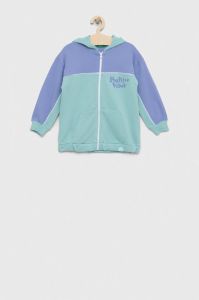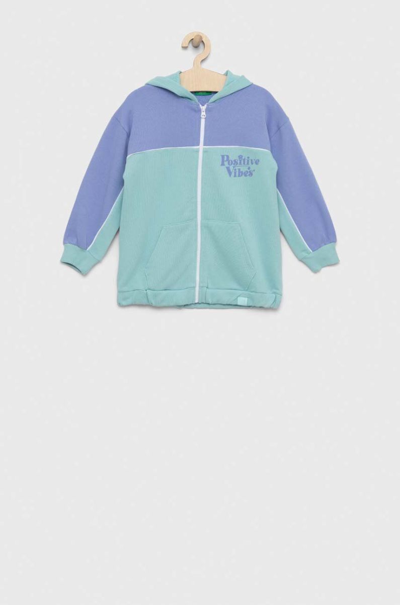 Дитяча бавовняна кофта United Colors of Benetton колір бірюзовий з капюшоном з принтом