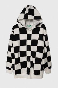 Дитяча бавовняна кофта United Colors of Benetton колір чорний з капюшоном візерунок (3397334)