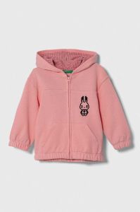 Дитяча бавовняна кофта United Colors of Benetton колір рожевий з капюшоном з аплікацією