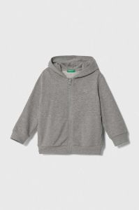 Дитяча бавовняна кофта United Colors of Benetton колір сірий з капюшоном меланж