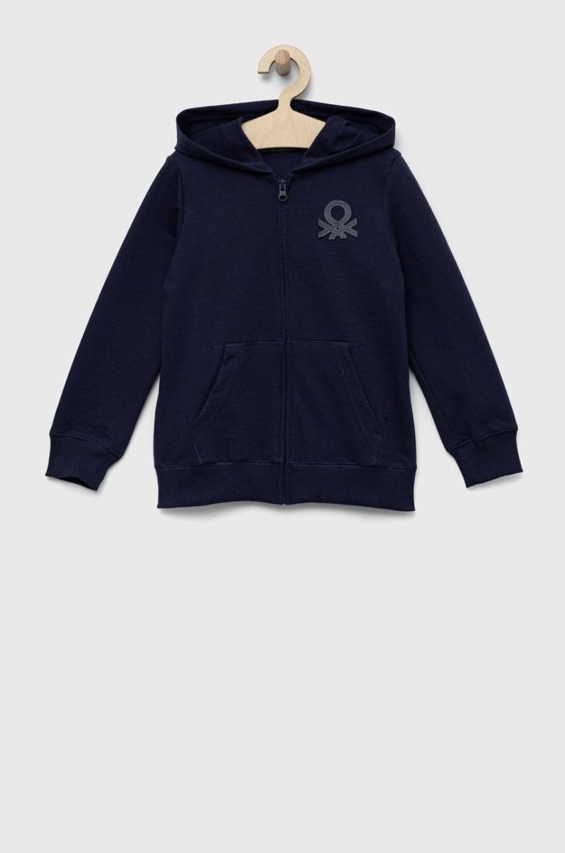 Дитяча бавовняна кофта United Colors of Benetton колір синій з капюшоном візерунок (3220125)