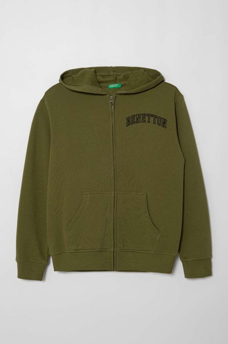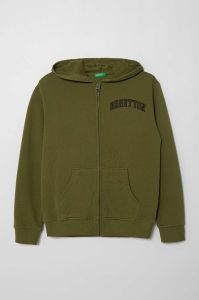 Дитяча бавовняна кофта United Colors of Benetton колір зелений з капюшоном візерунок (3390455)