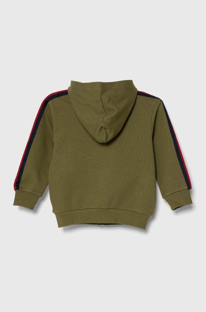 Дитяча бавовняна кофта United Colors of Benetton колір зелений з капюшоном з принтом (3393866)