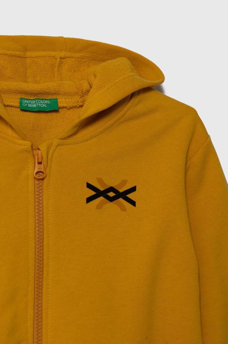 Дитяча бавовняна кофта United Colors of Benetton колір жовтий з капюшоном візерунок (3388199)