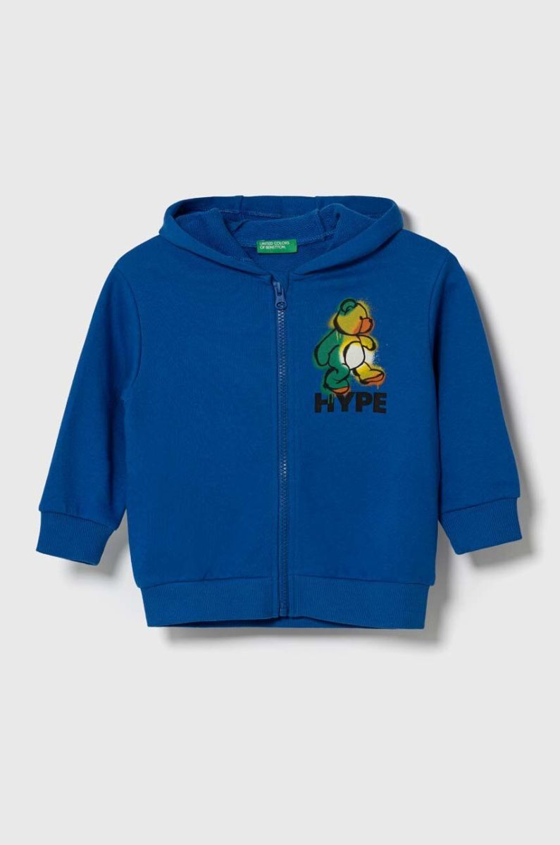 Дитяча бавовняна кофта United Colors of Benetton з капюшоном з принтом колір блакитний (3470324)