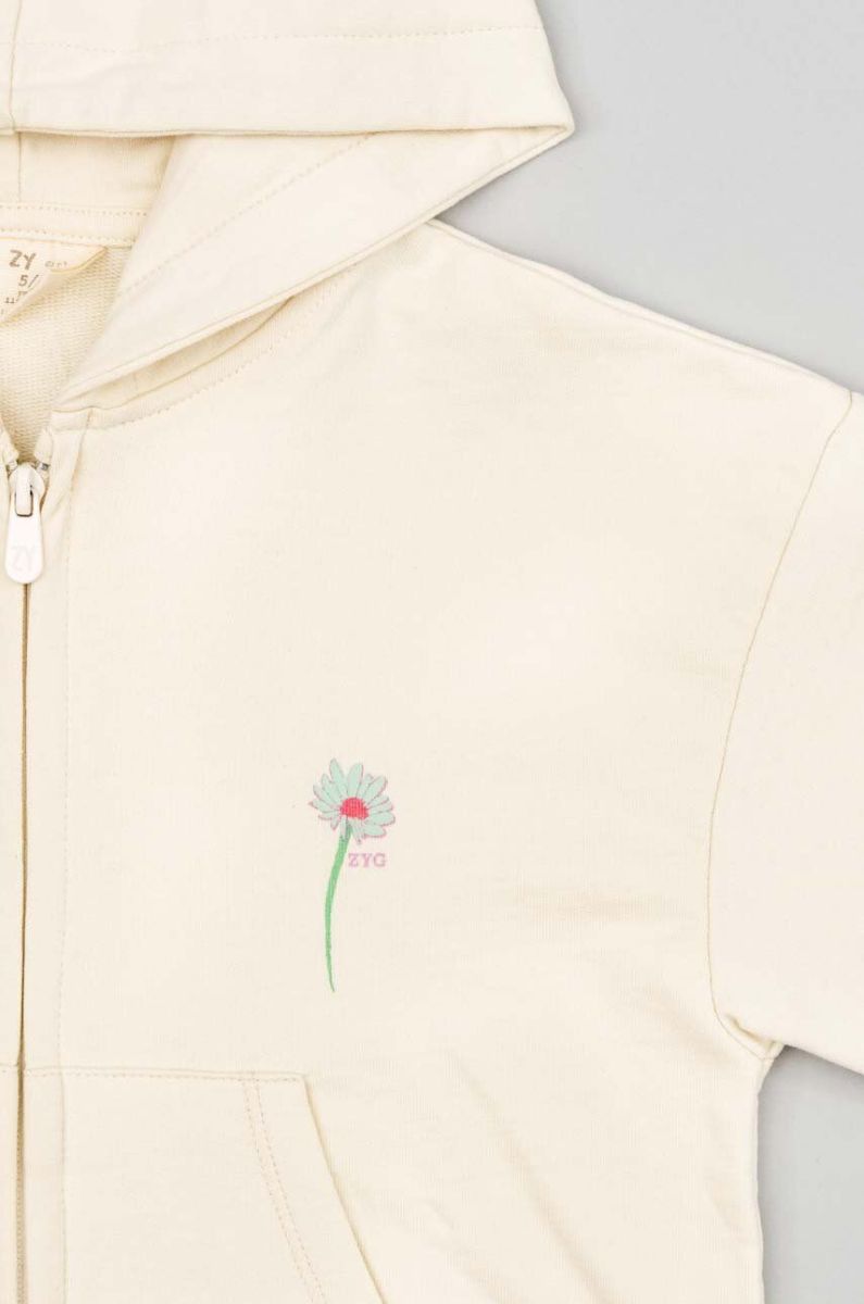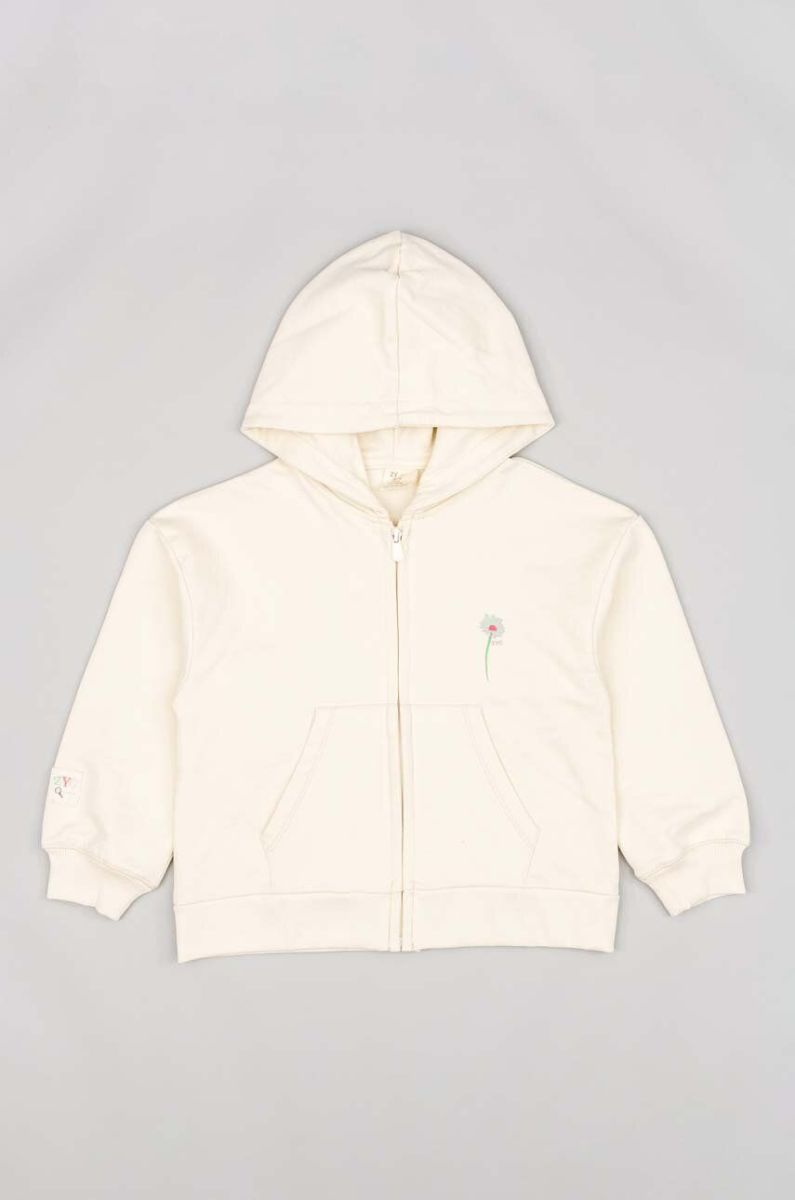 Дитяча бавовняна кофта zippy колір бежевий з капюшоном однотонна