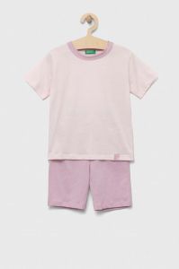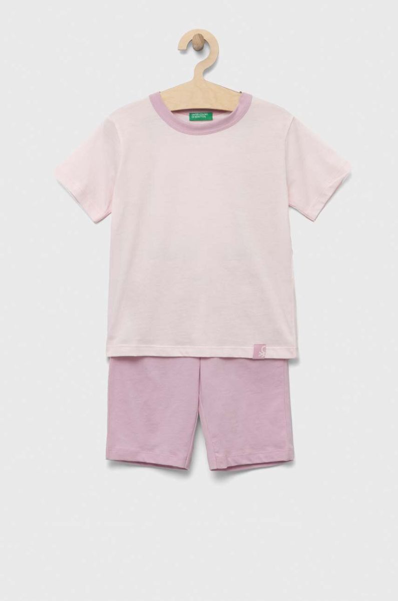 Дитяча бавовняна піжама United Colors of Benetton колір рожевий однотонна