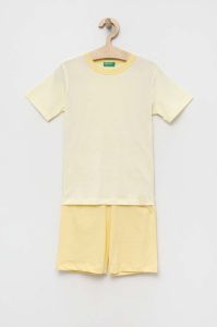 Дитяча бавовняна піжама United Colors of Benetton колір жовтий однотонна