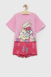 Дитяча бавовняна піжама United Colors of Benetton x Looney Tunes колір рожевий з принтом