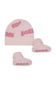 Дитяча бавовняна шапка BOSS колір рожевий з тонкого трикотажу з бавовни
