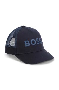 Дитяча бавовняна шапка BOSS колір синій з принтом (3197053)
