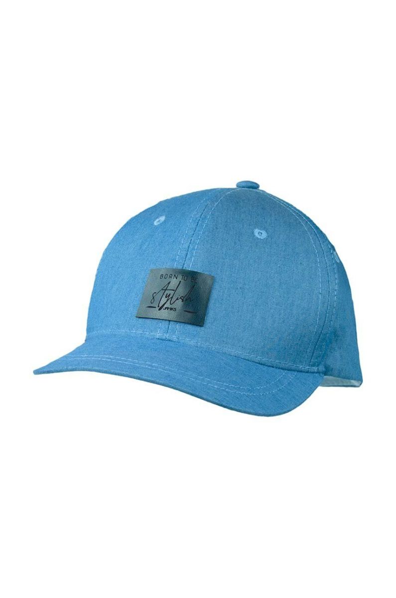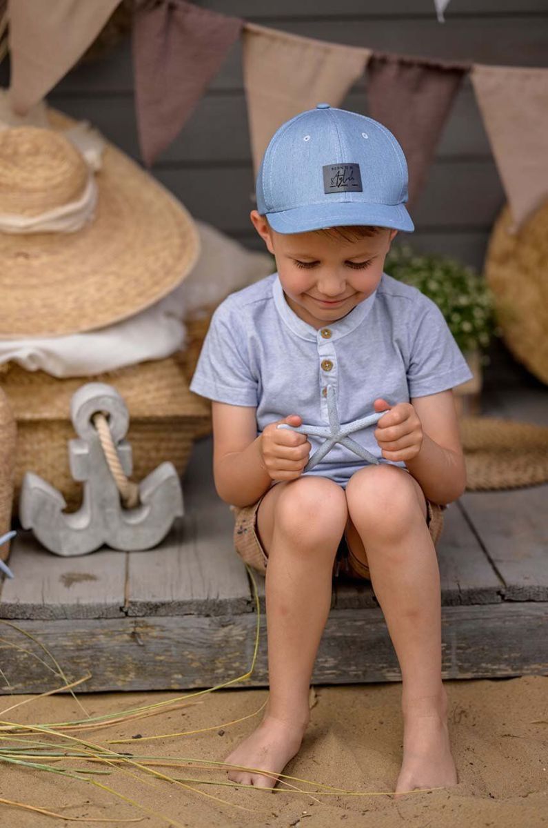 Дитяча бавовняна шапка Jamiks з аплікацією колір блакитний