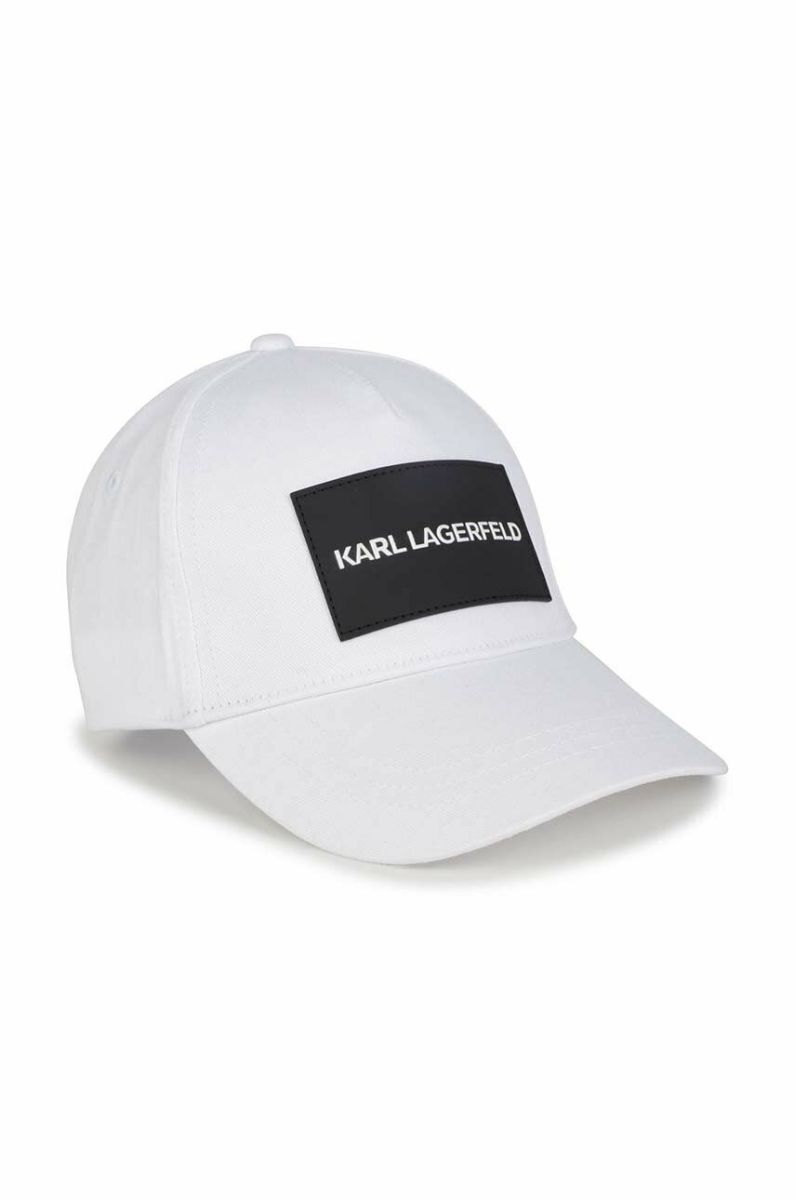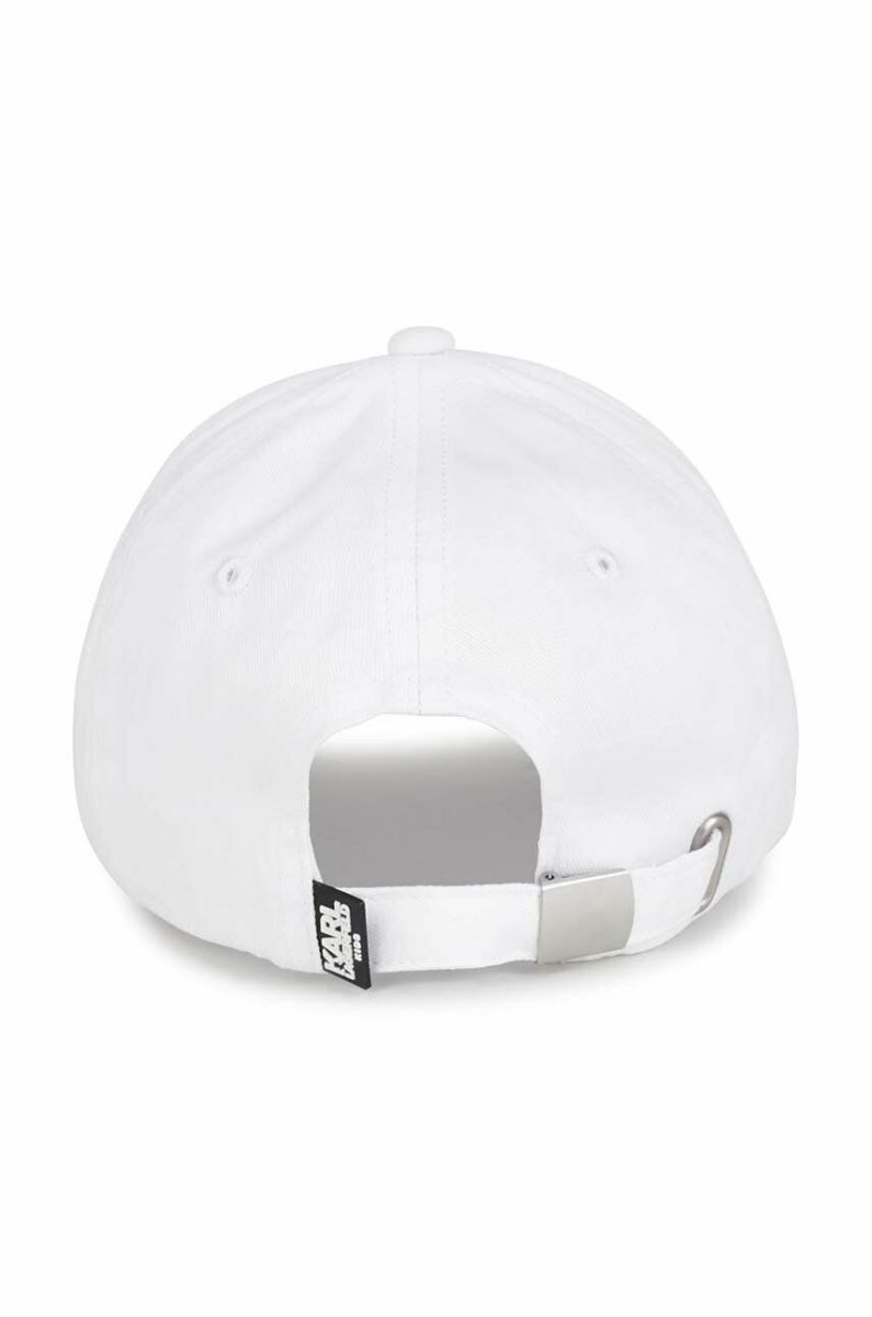 Дитяча бавовняна шапка Karl Lagerfeld колір білий з аплікацією