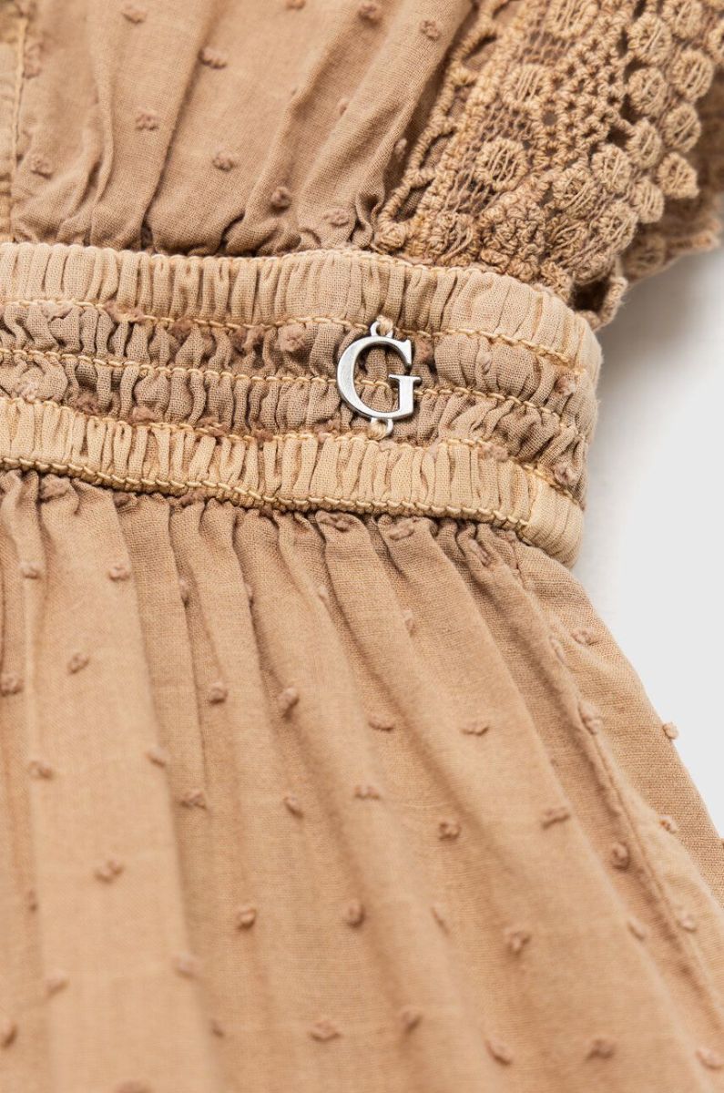 Дитяча бавовняна сукня Guess колір бежевий mini розкльошена