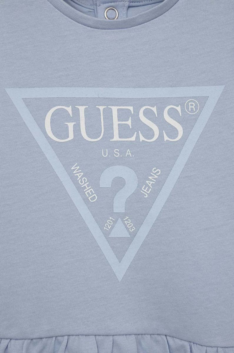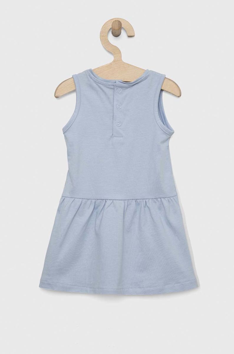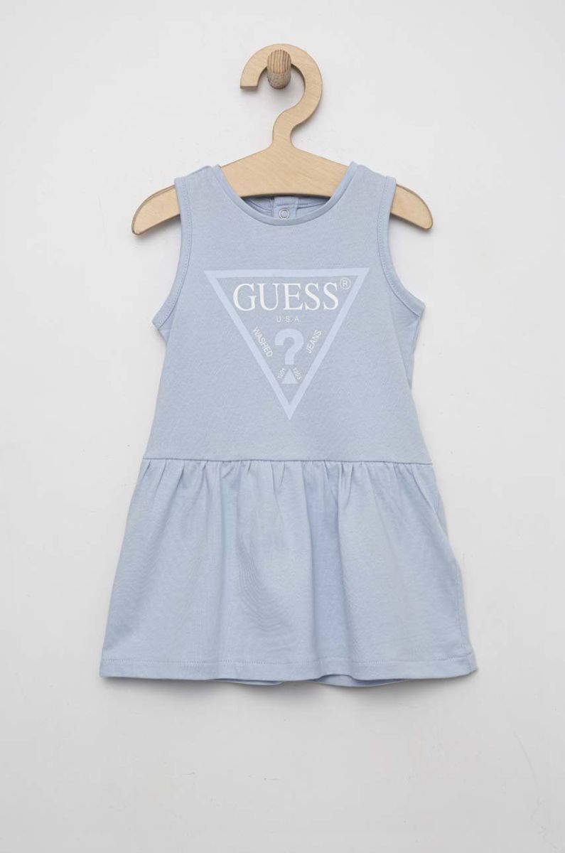 Дитяча бавовняна сукня Guess midi розкльошена колір блакитний