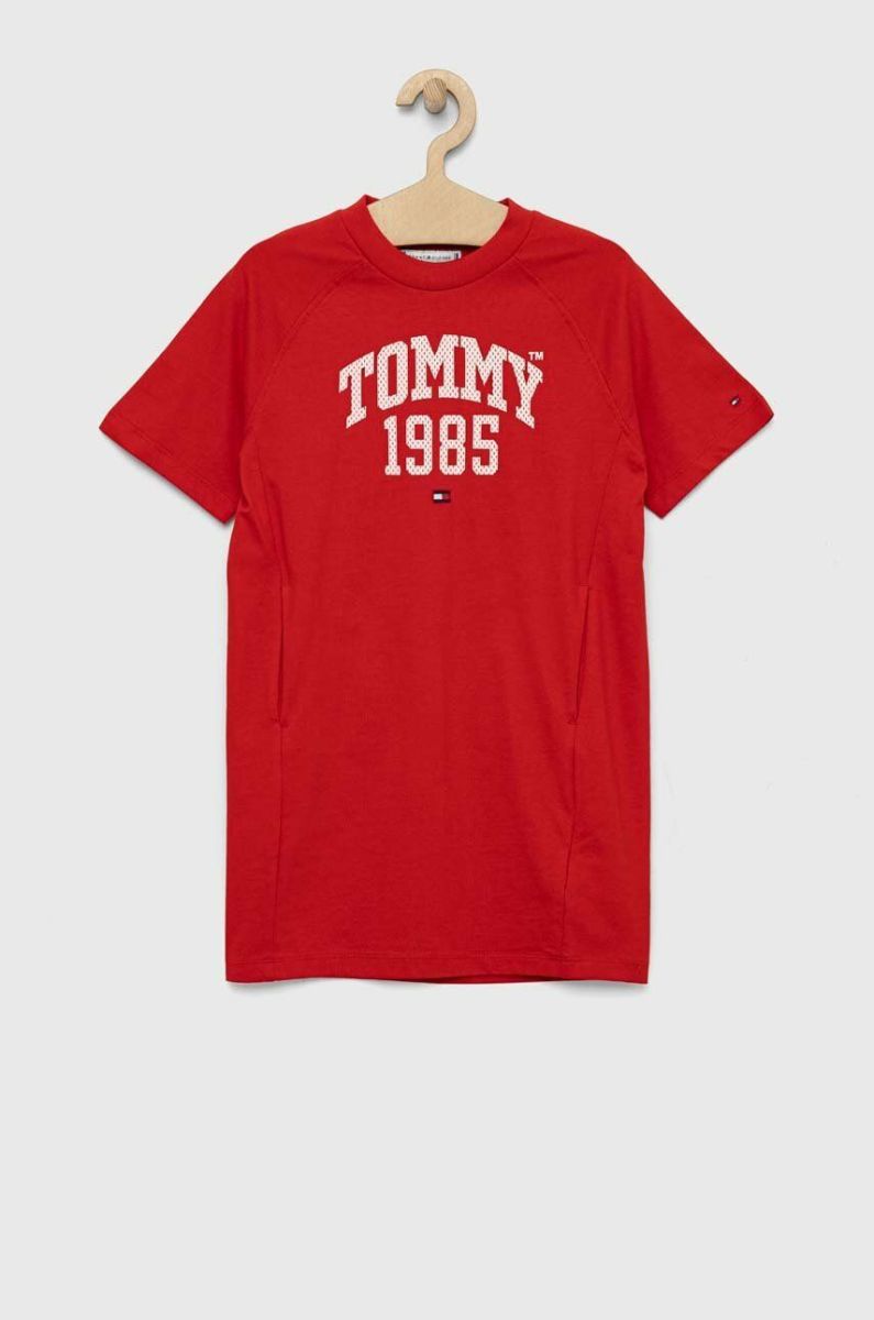 Дитяча бавовняна сукня Tommy Hilfiger Колір червоний mini пряма колір червоний