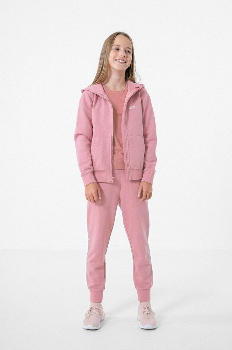 Дитяча кофта 4F колір рожевий з капюшоном однотонна
