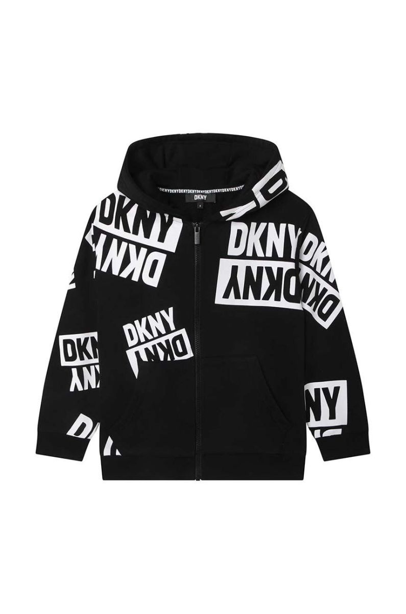 Дитяча кофта Dkny колір чорний з капюшоном візерунок (3068677)
