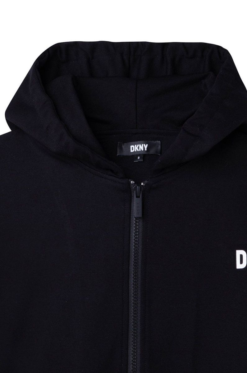 Дитяча кофта Dkny колір чорний з капюшоном з принтом (2770278)