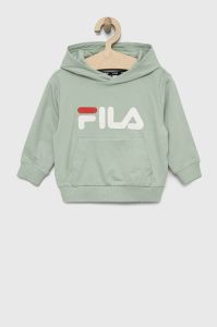 Дитяча кофта Fila колір зелений з капюшоном з принтом