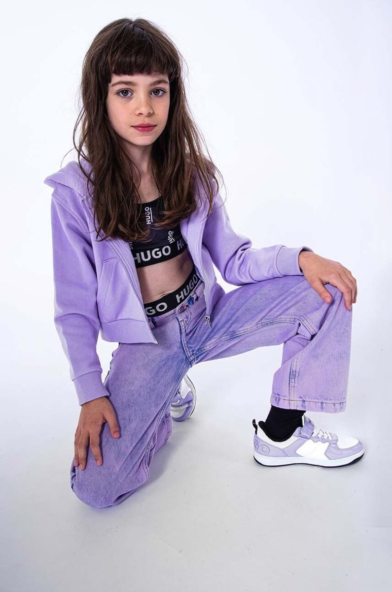 Дитяча кофта HUGO колір фіолетовий з капюшоном з принтом (3458189)