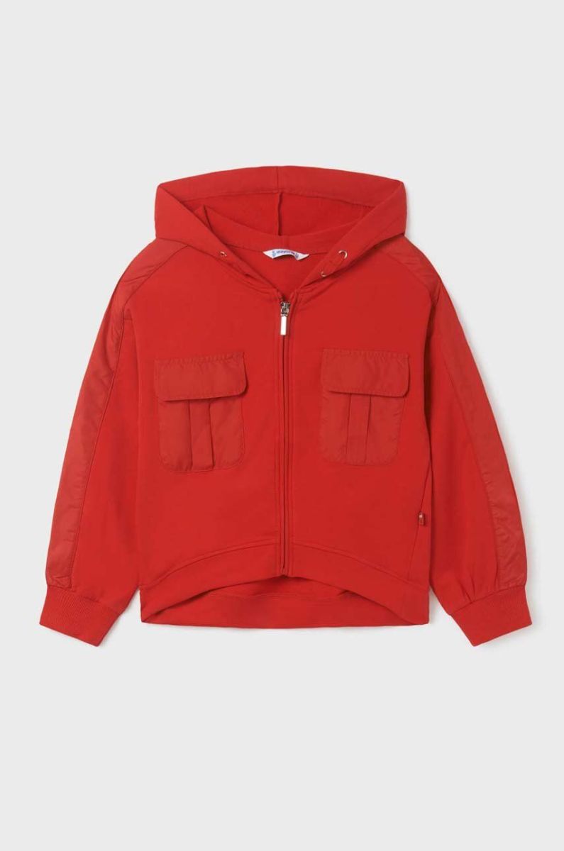 Дитяча кофта Mayoral колір червоний з капюшоном однотонна (2939467)