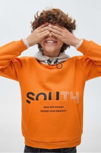 Дитяча кофта Mayoral колір помаранчевий з капюшоном з принтом (3413651)