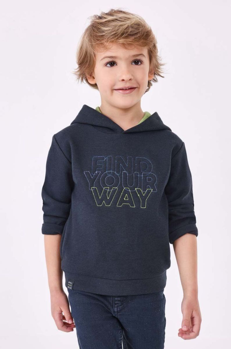 Дитяча кофта Mayoral колір сірий з капюшоном з принтом (3423563)