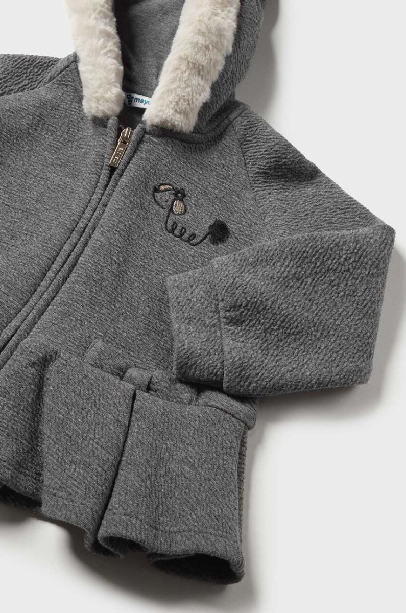Дитяча кофта Mayoral колір сірий з капюшоном з принтом (3496482)