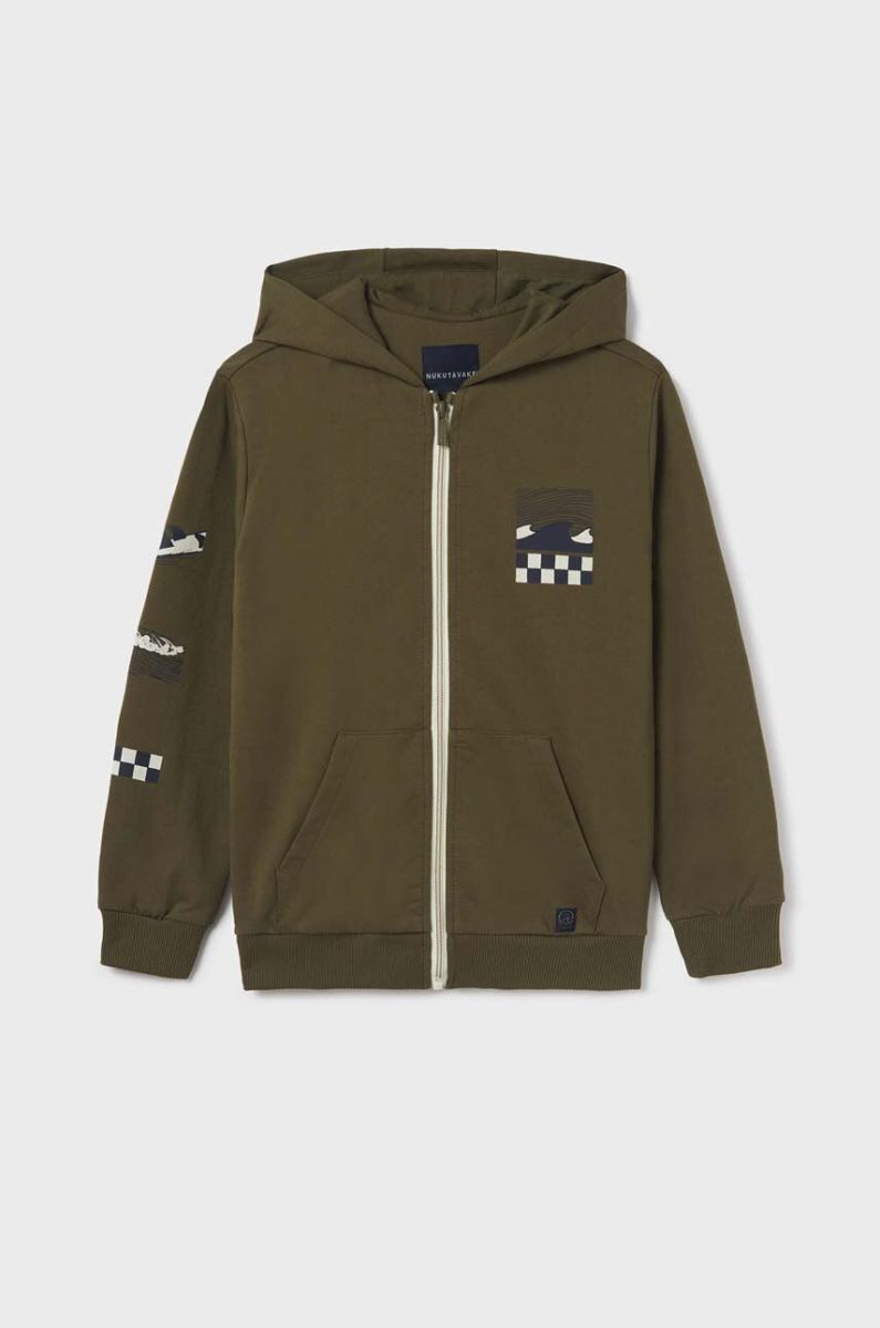 Дитяча кофта Mayoral колір зелений з капюшоном з принтом (2939236)