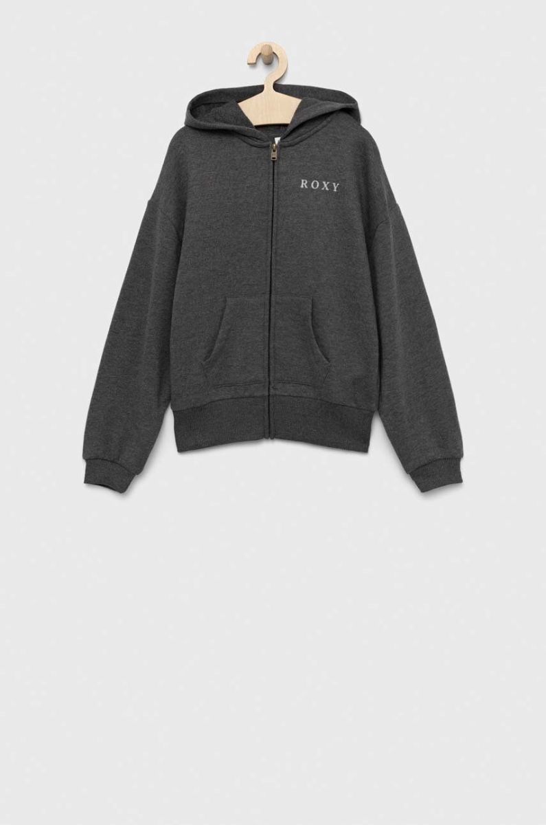 Дитяча кофта Roxy колір сірий з капюшоном однотонна