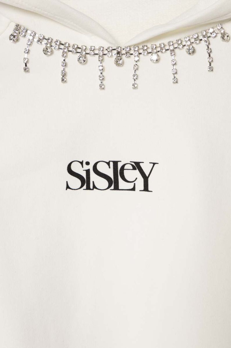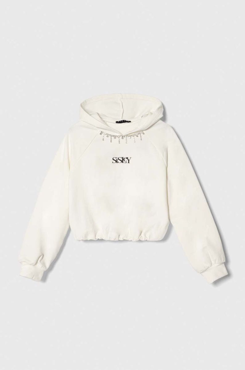 Дитяча кофта Sisley колір білий з капюшоном з принтом
