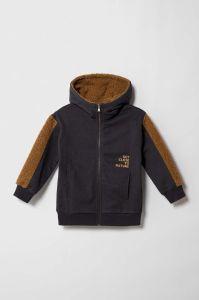 Дитяча кофта Sisley колір чорний з капюшоном візерунок