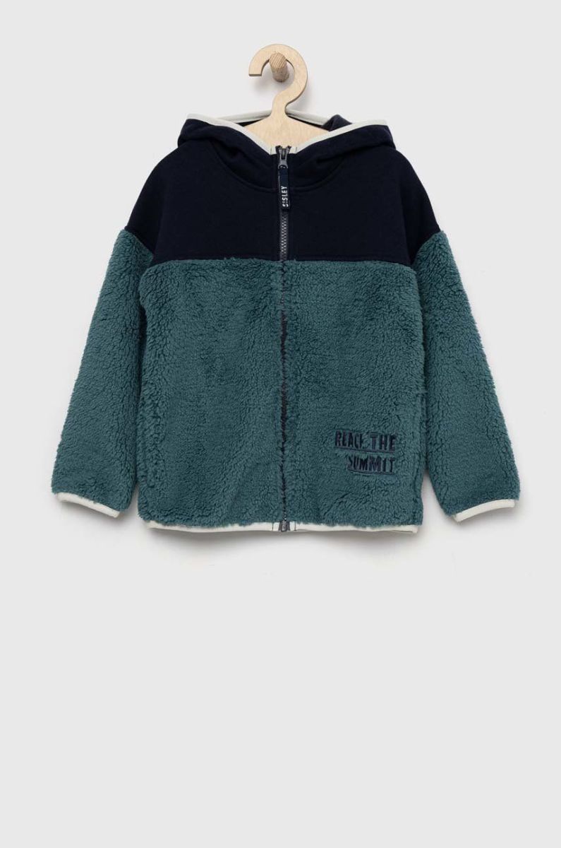 Дитяча кофта Sisley колір зелений з капюшоном однотонна