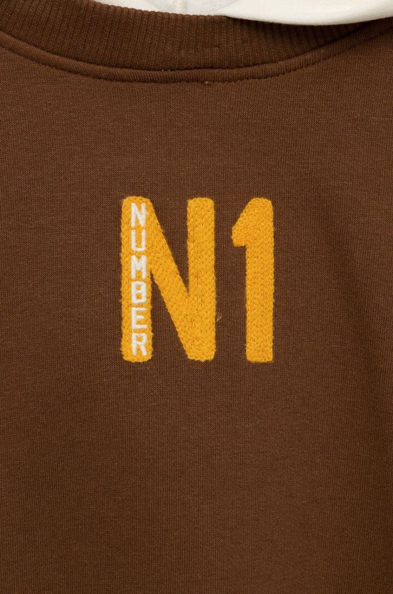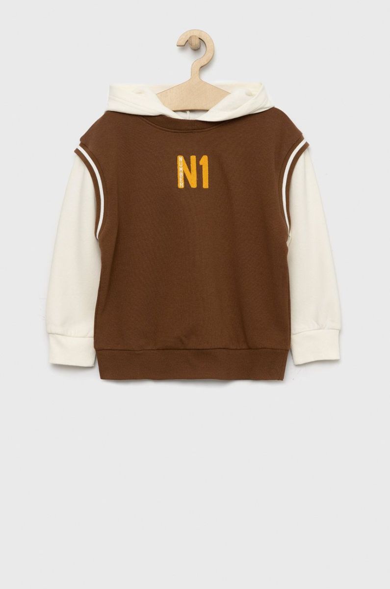Дитяча кофта United Colors of Benetton колір коричневий з капюшоном візерунок